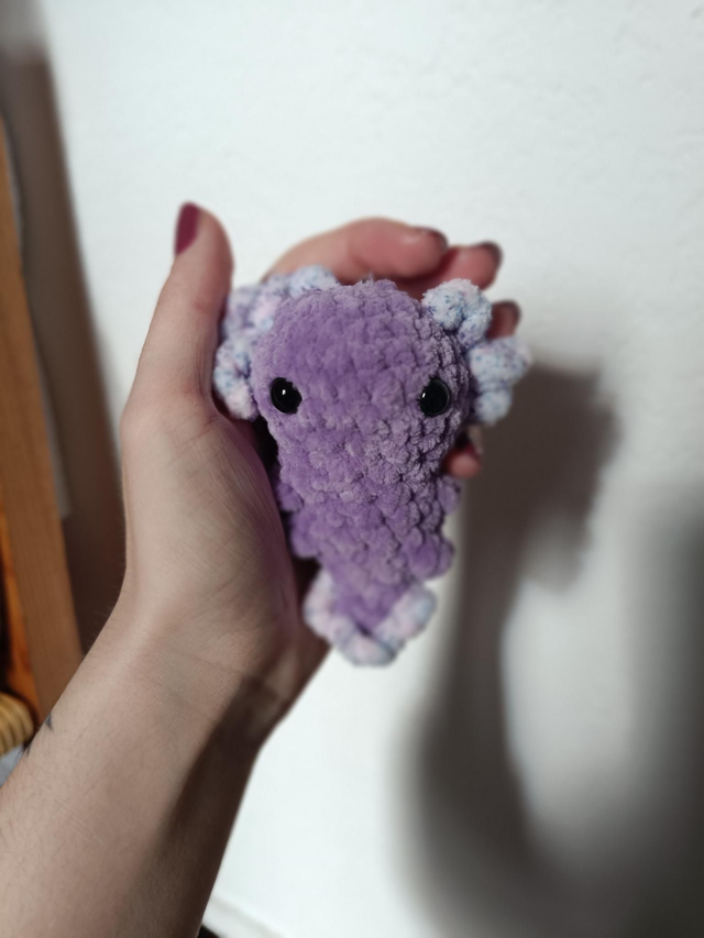 Amigurumis d'axolotls réalisés en laine chenille certifiée oeko-tex à la main 💜