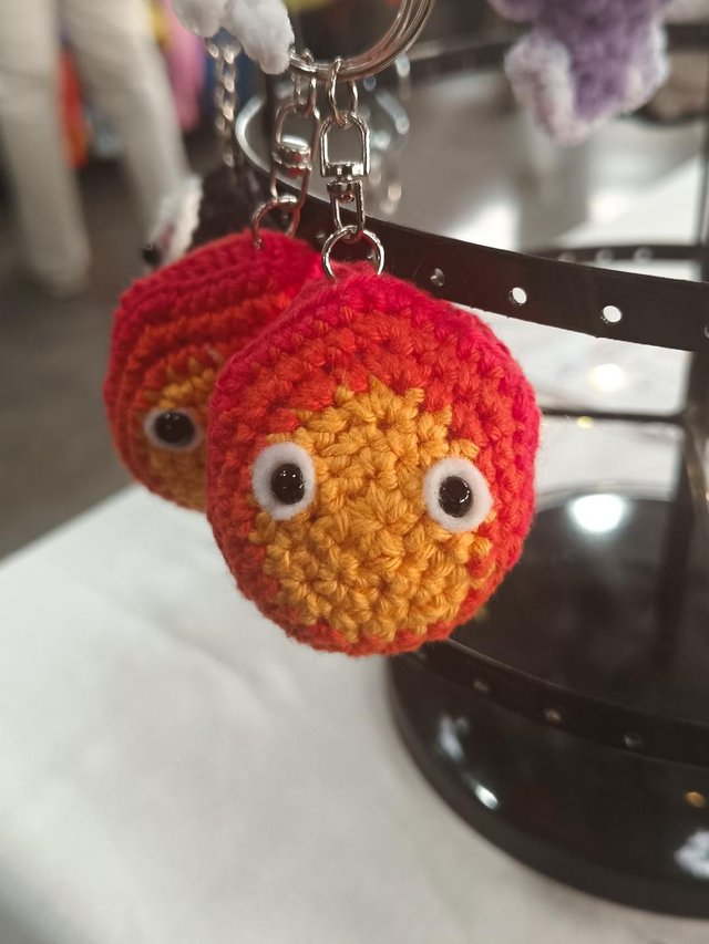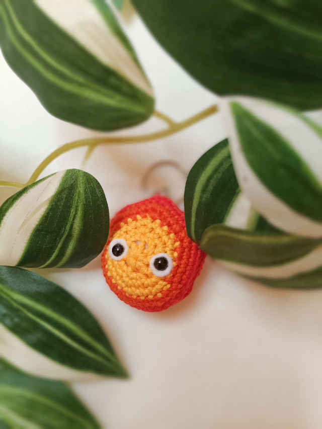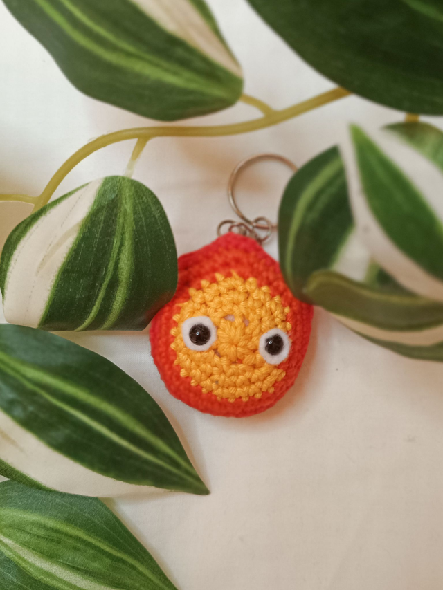 Calcifer le démon de feu de Miyazaki, réalisé au crochet en version porte-clés.